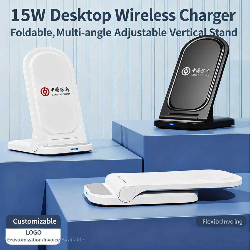 15W Magnetic Wireless Charging Stand with Custom Logo – Foldable, Portable Desktop Phone Holder
