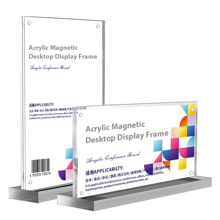 This portrait-style acrylic magnetic display frame is designed for clear, professional tabletop presentations. Made from high-transparency acrylic with a strong magnetic closure, it allows you to change inserts quickly and secure them in place. Ideal for menus, price lists, conference information, directional signage, and promotional materials.