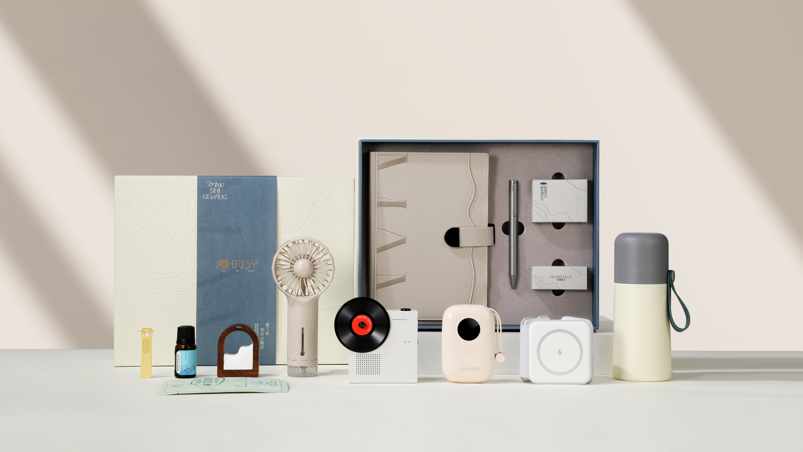 Instead of choosing a fixed gift box, you can build your own combination of packaging, products, and branding options.