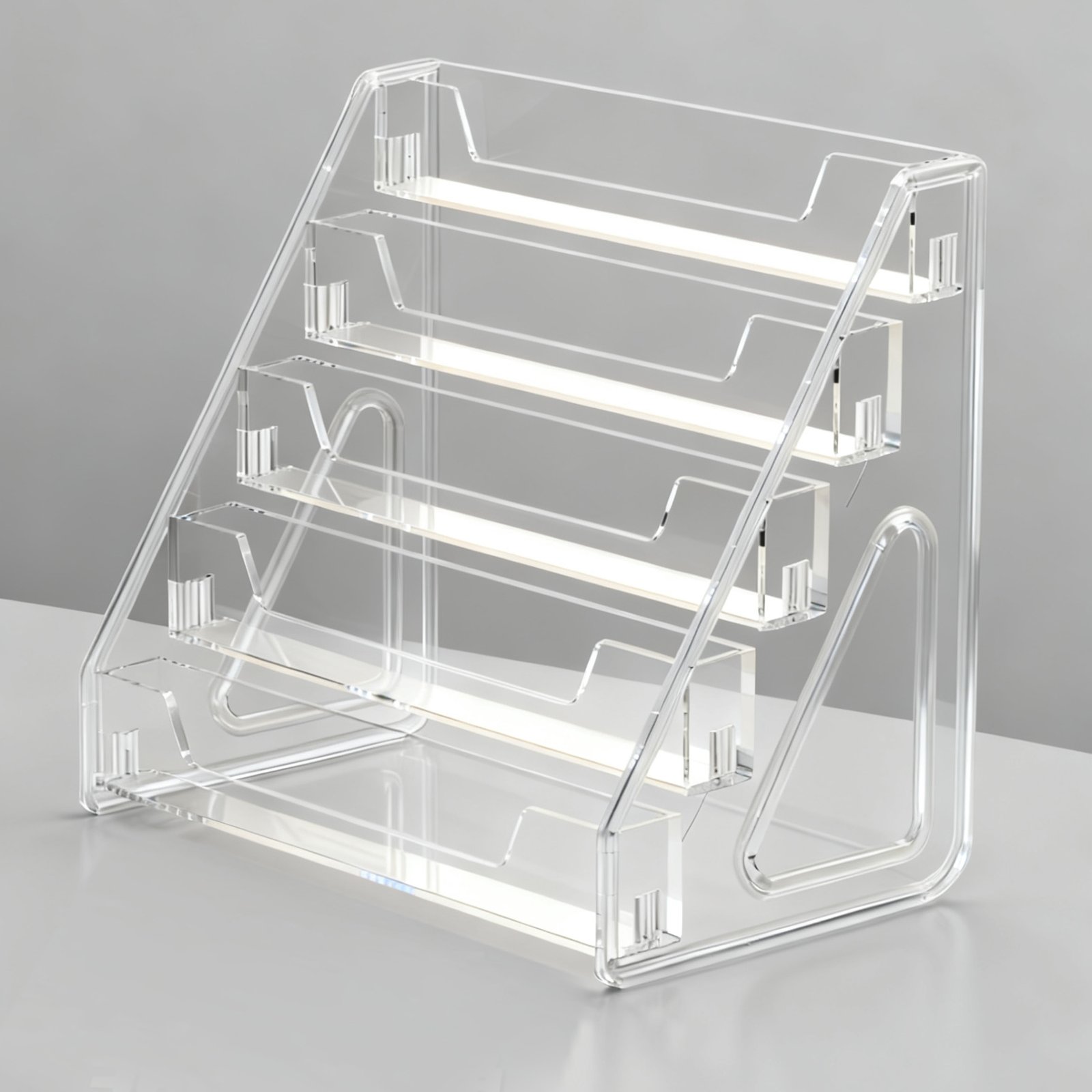 Clear Acrylic Tiered Display Stand for Badges, Photocards & Mini Figures – Desktop Organizer for Collectibles