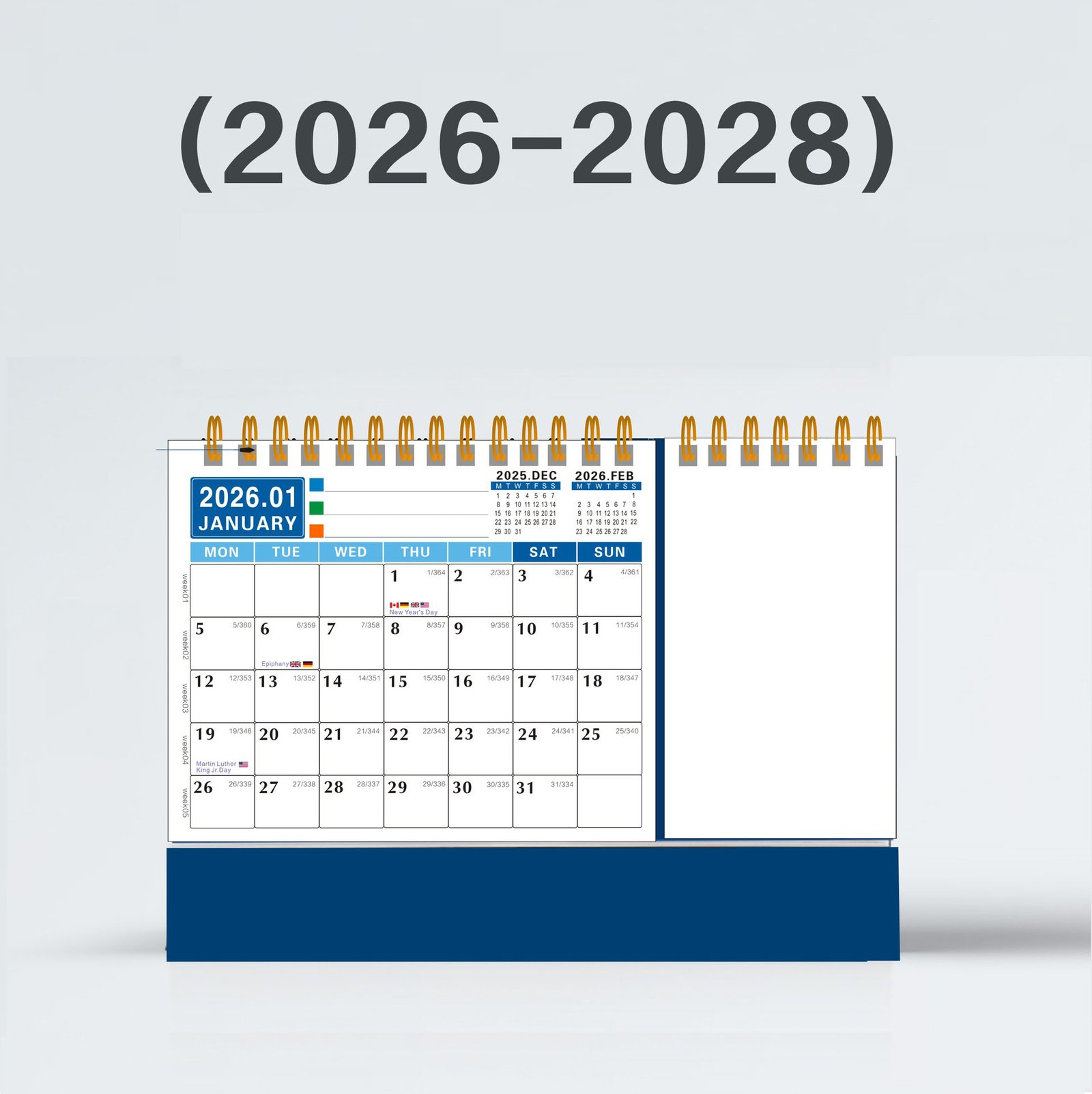 Each calendar features premium coated paper, a sturdy hardboard base, and double-wire binding for smooth page flipping.