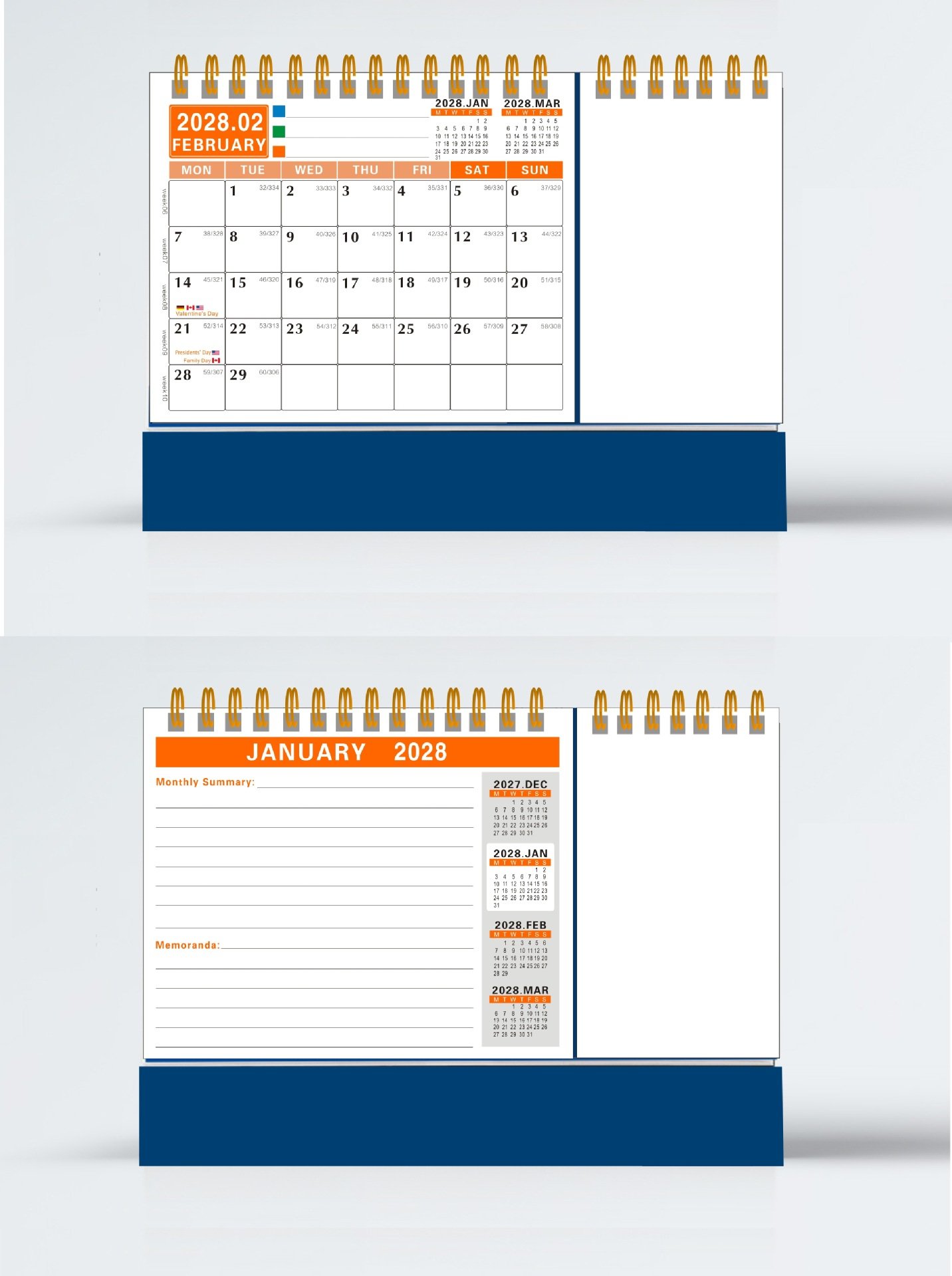 Each calendar features premium coated paper, a sturdy hardboard base, and double-wire binding for smooth page flipping.
