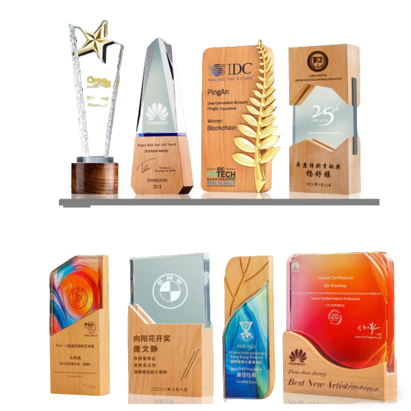Crystal trophy creation, creative solid wood trophy, authorization plaque, wooden award for outstanding employees, honorary award plaque, commemorative keepsake